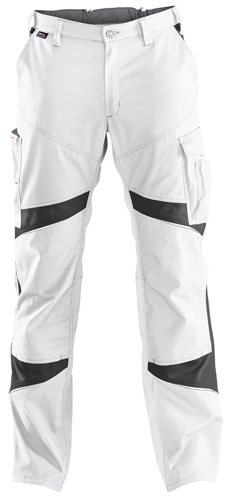 Nach EN 14404 bei Verwendung eines passenden Kübler Knieschoners ∙ Material 65% Polyester, 35% Baumwolle, ca. 270 g/m2 ∙ Ergonomische Linienführung für mehr Bewegungsfreiheit ∙ Zwei Seitentaschen ∙ Zwei Gesäßtaschen, rechts mit Patte und Druckknopf ∙ Rechts: ergonomisch positionierte Meterstabtasche auf Seitennaht ∙ Links: Schenkeltasche mit Patte und Druckknopf, aufgesetzte Stifttasche, integrierte Smartphonetasche ∙ Elastischer Bundeinsatz ∙ Schlitz mit Reißverschluss ∙ Vorgeformtes Knie mit Bewegungszone und von unten befüllbare Knieschutztaschen aus CORDURA® ∙ Belastungspunkte mit Riegeln gesichert
