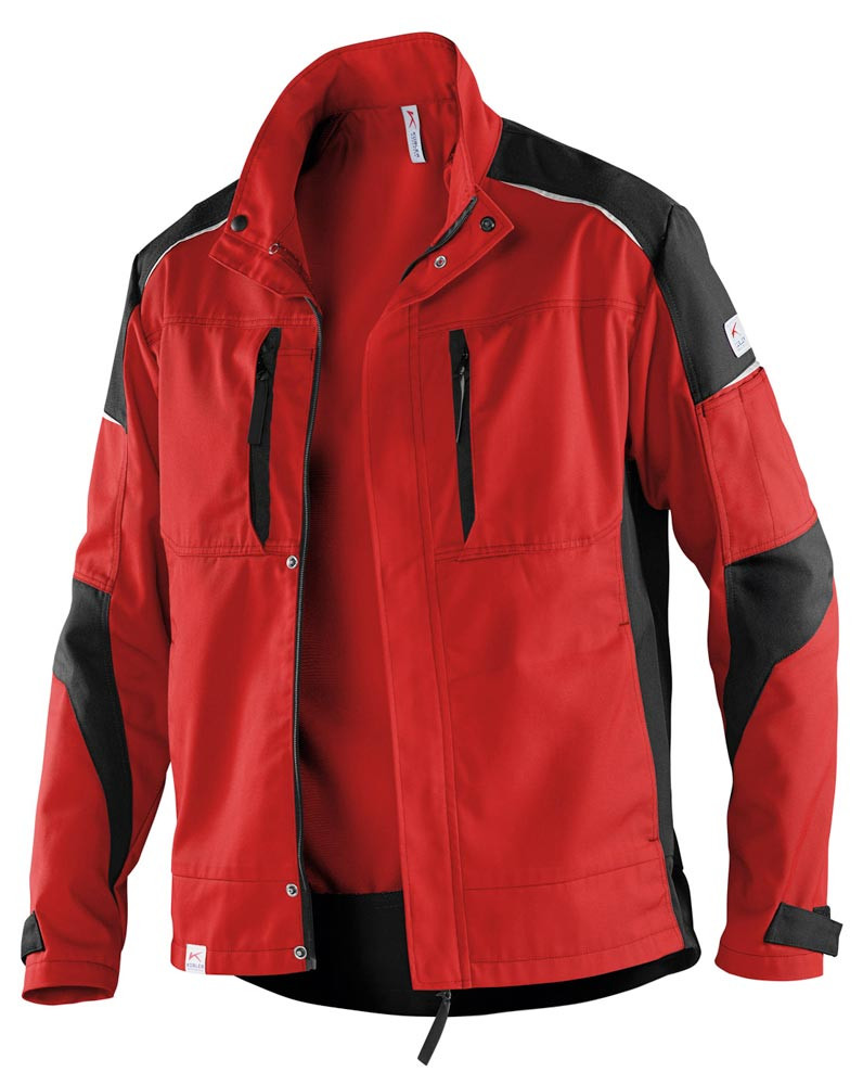 Zwei Seitentaschen mit Druckknopf ∙ Rechts: Stifttasche an Brusttasche ∙ Links: Armtasche mit integrierter Stifttasche ∙ Steh-/Umlegekragen ∙ Ärmelsaum mit Klette weitenregulierbar ∙ Belastungspunkte mit Riegeln gesichert