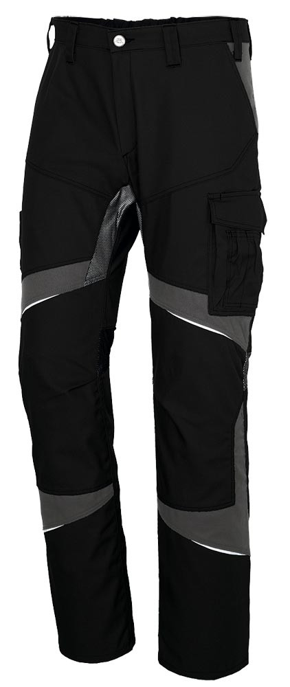 Material 65% Polyester, 35% Baumwolle, ca. 270g/m2 ∙ Ergonomische Linienführung für mehr Bewegungsfreiheit ∙ Zwei Seitentaschen ∙ Zwei Gesäßtaschen, rechts mit Patte und Druckknopf ∙ Rechts: ergonomisch positionierte Meterstabtasche auf Seitennaht ∙ Links: Schenkeltasche mit Patte und Druckknopf, aufgesetzte Stifttasche, integrierte Smartphonetasche ∙ Elastischer Bundeinsatz ∙ Schlitz mit Reißverschluss ∙ Vorgeformtes Knie mit Bewegungszone ∙ Belastungspunkte mit Riegeln gesichert ∙ Ventilationseinsatz in der Kniekehle und im Schritt für optimalen Temperaturausgleich