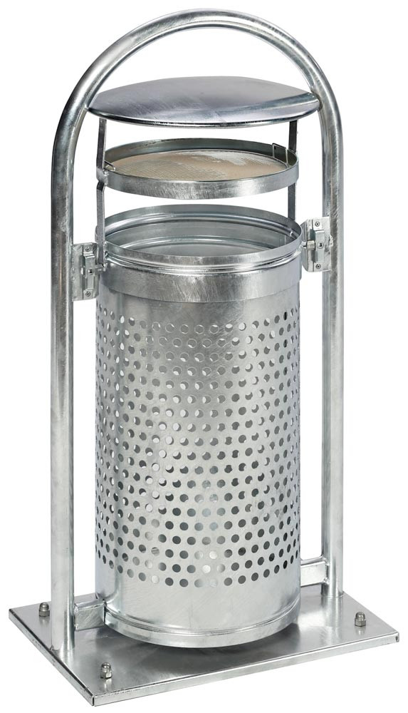 Abfallbehälter, Außeneinsatz, mit Ascher, komplett feuerverzinkt, Vol. 65 l, BxTxH 580x380x1165 mm