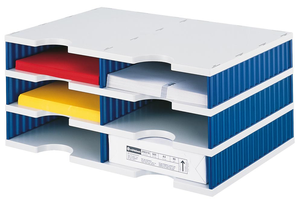 · Zur Verwahrung von Kopierpapier, Zeitschriften, etc. oder als Postsortieranlage · Durch Aufbaumodule jederzeit erweiter- und kombinierbar · Aus hochbelastbarem Polystyrol · Boden in grau, Seitenteile farblich abgesetzt · Inkl. Beschriftungsschilder · Anlieferung erfolgt zerlegt im handlichen Karton
