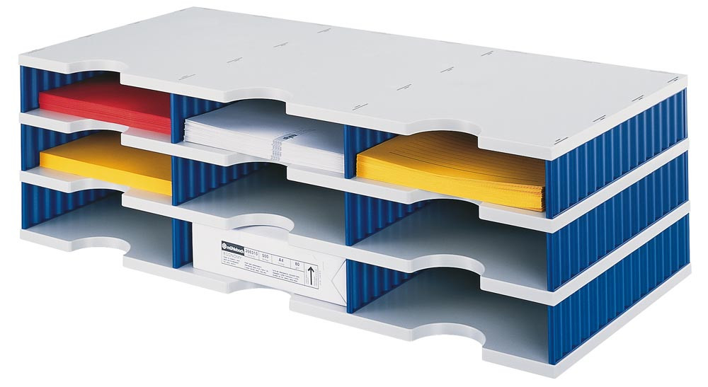 · Zur Verwahrung von Kopierpapier, Zeitschriften, etc. oder als Postsortieranlage · Durch Aufbaumodule jederzeit erweiter- und kombinierbar · Aus hochbelastbarem Polystyrol · Boden in grau, Seitenteile farblich abgesetzt · Inkl. Beschriftungsschilder · Anlieferung erfolgt zerlegt im handlichen Karton
