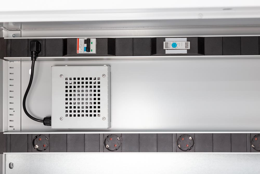 Temperaturgesteuerter Lüfter und Masterleiste beim Premium-Schrank