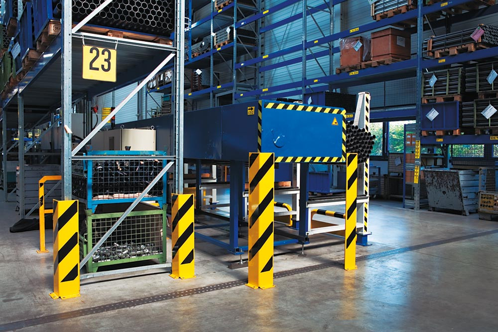 · Stahl, gelb kunststoffbeschichtet mit schwarzen Streifen ∙ Vorgeschriebener Anfahrschutz für ortsfeste Regale in Verbindung mit Flurförderzeugen, sofern nicht spurgebunden ∙ Schützt im Eck- und Durchfahrtsbereich ∙ Einsetzbar als Anfahrschutz für Lagereinrichtungen, Maschinengitter und Trennwandsysteme ∙ Gestaltung gemäß DGUV-Regel 108-007, ASR A1.3/5.2 und DIN 15512 (Höhe mind. 400 mm) ∙ Zum Aufdübeln (Montagematerial bitte separat mitbestellen)