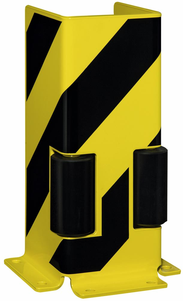 · Schützt die Stützen von Regalen im Eck- und Durchfahrtsbereich· Stahl, gelb kunststoffbeschichtet mit schwarzen Signalstreifen · Polyamid-Rolle, Höhe 110 mm, Anbringung 75 mm über Flur · Rolle leitet den Großteil der einwirkenden Kräfte ab und erhöht die Lebensdauer des Anfahrschutzes · Gestaltung gemäß DGUV-Regel 108-007, ASR A1.3/5.2 und DIN 15512 (Höhe mind. 400 mm)