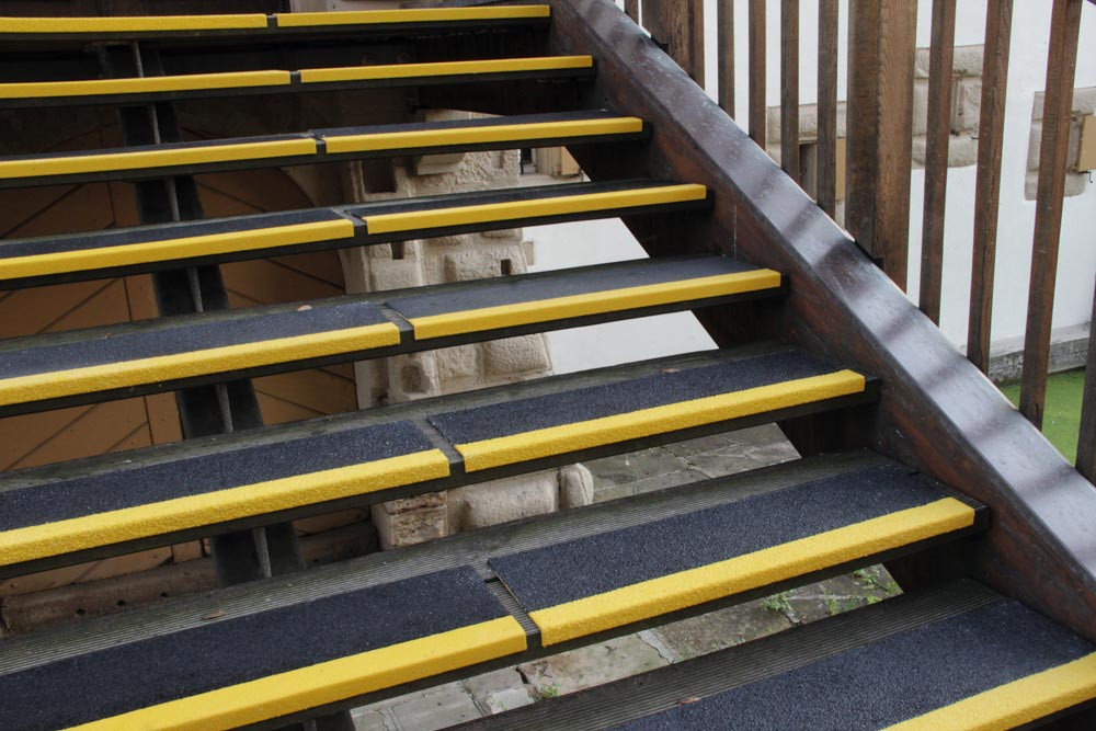 ∙ Aus glasfaserverstärktem Spezialkunststoff ∙ Hervorragende Abriebfestigkeit 5 Mio. Begehungen ∙ Hohe Trittsicherheit, Rutschfaktor R13 gem. DGUV-Regel 108-003 ∙ Chemikalien- und mineralölresistent · UV - stabil · Schwer entflammbar · Materialstärke 3,8 mm · Temperaturbereich -20 bis +120°C · Aufschraubbar auf allen Untergründen oder zum Verkleben (Kleber nicht im Lieferumfang enthalten)