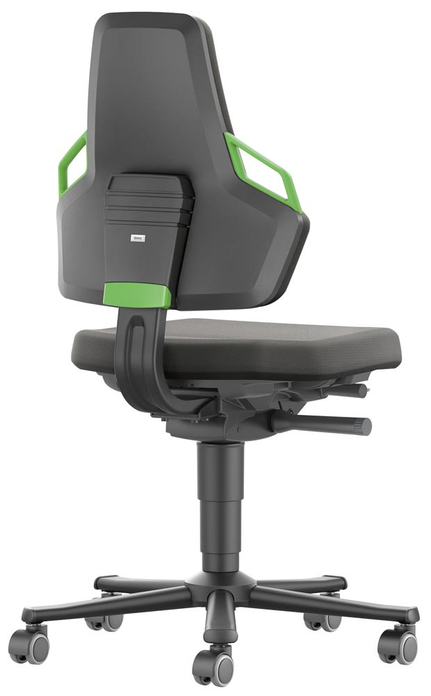 Arbeitsdrehstuhl mit autom. Gewichtregulierung, Sitz Stoff schwarz, Griffe grün, Rollen, Sitz Höhe 450-600 mm E6042556