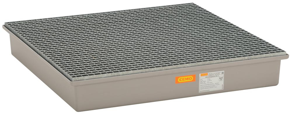 Auffangwanne aus GFK, mit verzinktem Gitterrost, Auffangvolumen 220 l, BxTxH 1280x1280x210 mm