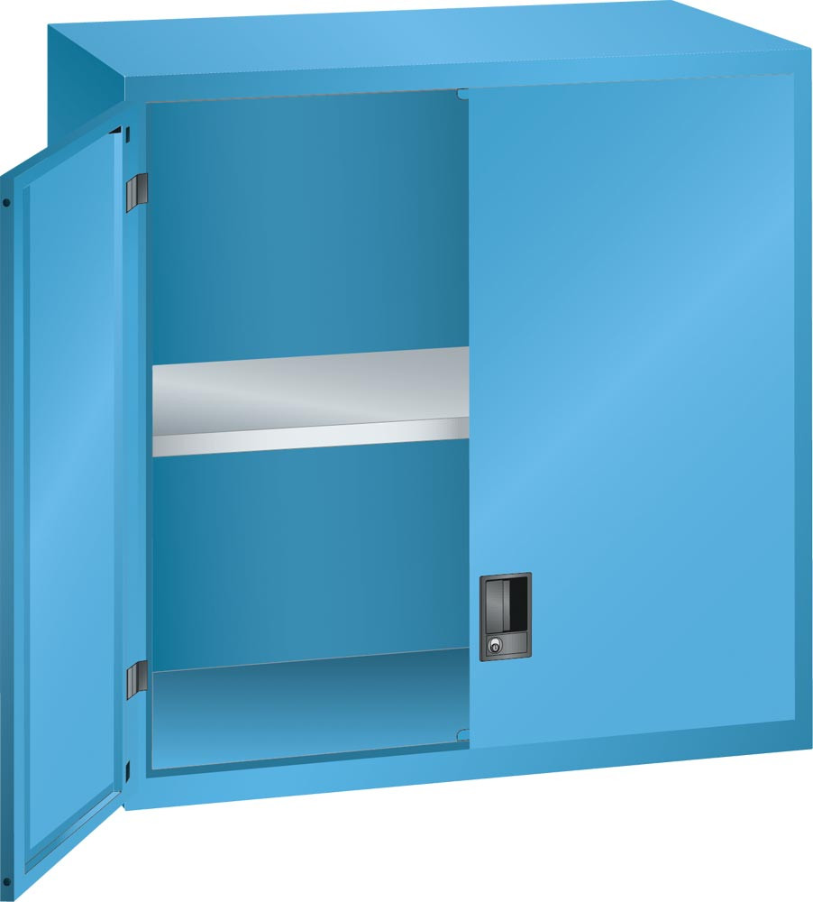 Aufsatzschrank mit Vollblechflügeltüren, BxTxH 717x725x1000 mm, 1 Verstellboden, RAL 5012, passend zu Schubladenschrank 36x36 E E1979447