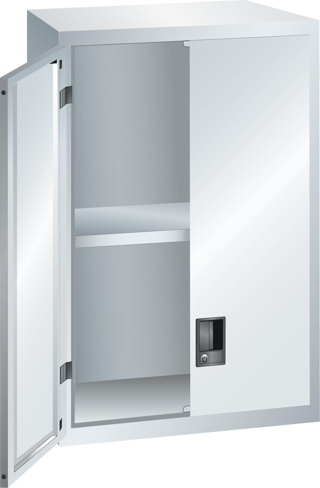 Aufsatzschrank mit Vollblechflügeltüren, BxTxH 717x572x1000 mm, 1 Verstellboden, RAL 7035, passend zu Schubladenschrank 36x27 E E1979452
