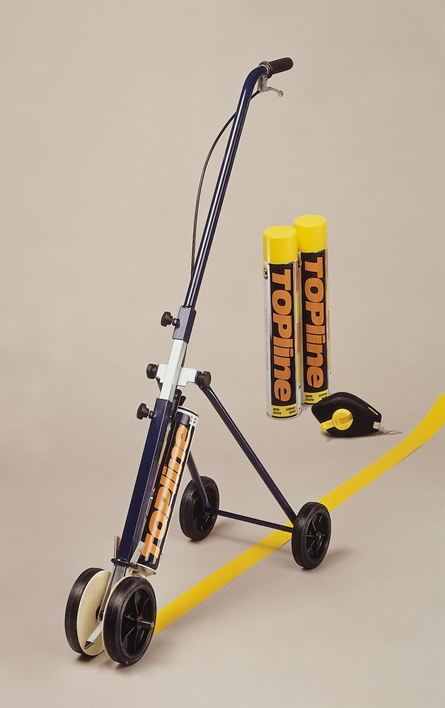 Bodenmarkierer-Einsteiger-Set, bestehend aus Markiergerät für 1 Kartusche, 2 Kartuschen Bodenmarkierfarbe gelb, 1 Schlagschnur und Kreide E840938