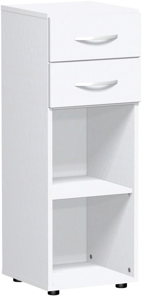 Büroregal, BxTxH 400x420x1104 mm, 3 OH, 2 Schubladen, 1 Boden, Justierfüße, weiß