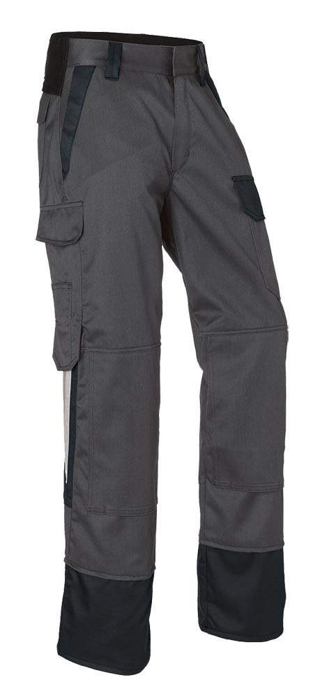 Nach EN ISO 11612:2015, EN ISO 11611:2015, EN 1149-5, EN 13034:2005, IEC 61482-2 APC=1, EN ISO 15797 und EN 14404 in Verbindung mit passendem Kübler Knieschutzpolster ∙ Aus 47% Modacryl/32% Baumwolle/20% Polyamid/1% Antistatische Faser, ca. 320 g/m2 ∙ Ergonomische Linienführung für mehr Bewegungsfreiheit ∙ Zwei Seitentaschen mit Klette ∙ Zwei Gesäßtaschen mit Patte und Klette ∙ Rechts: ergonomisch positionierte, lose Meterstabtasche mit Patte und Klette, zusätzliche Multifunktionstasche ∙ Links: Schenkeltasche mit kombinierter Smartphonetasche ∙ FlexZone: elastischer Bundeinsatz ∙ Von unten befüllbare Knieschutztaschen mit Klette