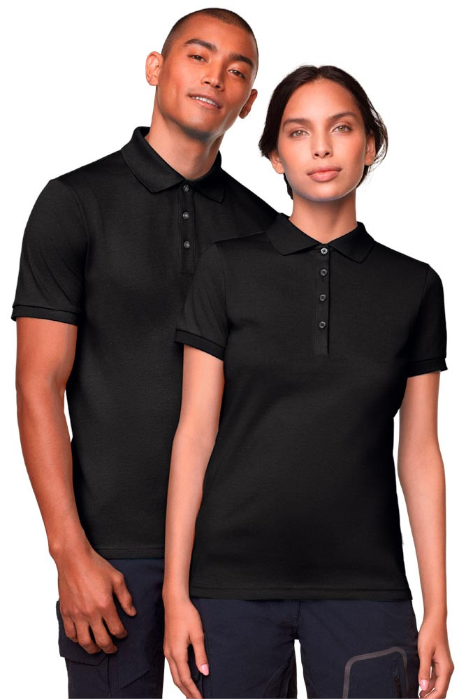 Single-Jersey aus 50% Baumwolle/50% Polyester, ca. 185 g/m2 ∙ Polo-Shirt mit hochwertig verarbeiteter 3-Loch- Knopfleiste mit extra haltbar angenähten, bruchsicheren Knöpfen ∙ Kragennaht und Innenseite der Seitenschlitze mit kontrastfarbigem Gewebeband belegt ∙ Durch ein spezielles Strickverfahren hergestellt, bei dem zwei Garne zu einem HAKRO COTTON TEC®-Double-Face-Material verarbeitet werden ∙ Innenseite mit Mesh-Lage aus Funktionsfaser