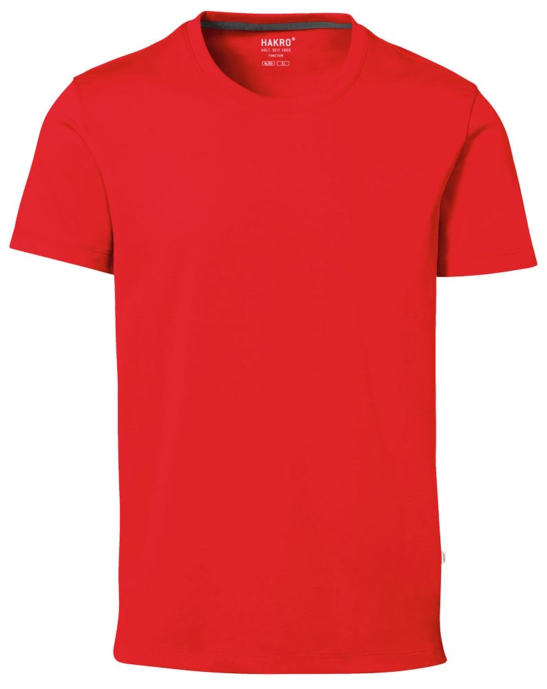 Single-Jersey aus 50% Baumwolle/50% Polyester, ca. 185 g/m2 ∙ T-Shirt mit rundem Halsausschnitt und Nackenband ∙ Kragennaht und Innenseite der Seitenschlitze mit kontrastfarbigem Gewebeband belegt ∙ Durch ein spezielles Strickverfahren hergestellt, bei dem zwei Garne zu einem HAKRO COTTON TEC®-Double-Face-Material verarbeitet werden ∙ Innenseite mit Mesh-Lage aus Funktionsfaser TRIACTIVE ∙ Einlaufvorbehandelt ∙ Atmungsaktiv