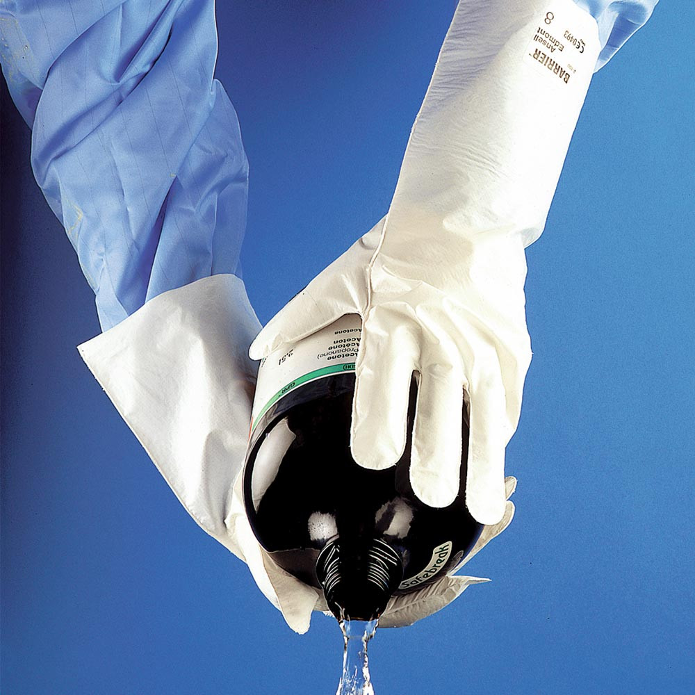 Gefahren-Kategorie III - Schutz gegen hohe Risiken Nach EN ISO 374-5 und EN ISO 374-1 ∙ Chemikalienbeständige, 5-lagige Laminat-Handschuhe Anatomische PassformSchutz vor einem äußerst breiten Spektrum von Chemikalien und Flüssigkeiten ∙ AQL 0,065 (EN 374) ∙ Glatte Ausführung mit Schutzstulpe ∙ 100% geprüft: Jeder Handschuh wird einzeln luftdruckgeprüft ∙ Länge 380 - 410 mmDicke 0,062 mm ∙ Farbe weiß