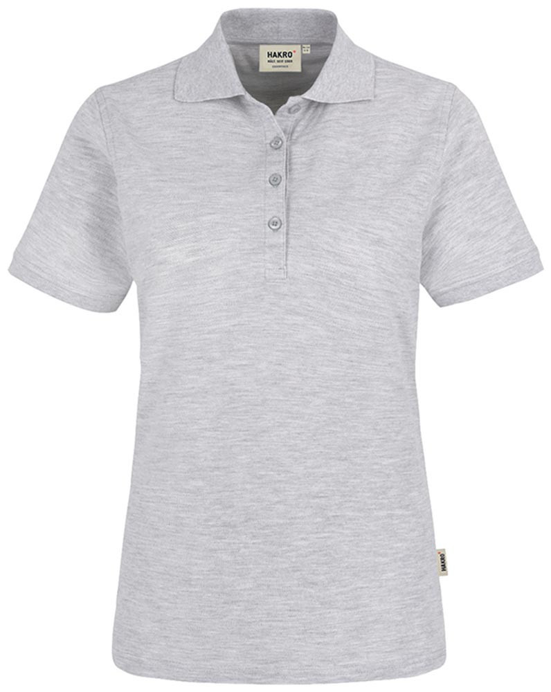 Klassisches Damen-Polo-Shirt aus feinmaschigem Piqué aus 100% langstapeliger, gekämmter und ringgesponnener Baumwolle, ca. 200 g/m2 (ash-meliert: 98% Baumwolle/2% Viskose) ∙ Feminin geschnitten (Regular Fit) ∙ Gewebtes Necklabel aus hochwertigem Kettsatin mit weichen, ultraschallgeschnittenen Bandkanten für höchsten Tragekomfort sowie gewebtes Flaglabel an der linken Seitennaht ∙ Mit modisch schmaler, hochwertig verarbeiteter 4-Loch-Knopfleiste mit extrahaltbar angenähten, bruchsicheren Knöpfen, "Ton in Ton" mit dem gelaserten HAKRO-Schriftzug ∙ Mit Ersatzknopf, Nackenband und doppelt geriegelten Seitenschlitzen ∙ Waschbar bis 60 °C ∙ Einlaufvorbehandelt