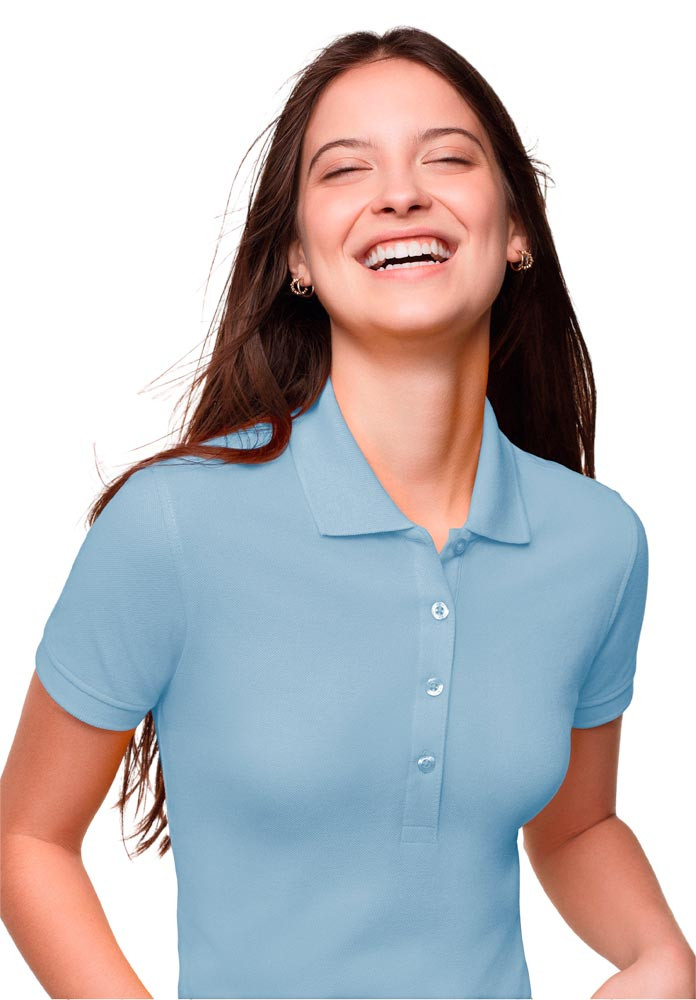 Klassisches Damen-Polo-Shirt aus feinmaschigem Piqué aus 100% langstapeliger, gekämmter und ringgesponnener Baumwolle, ca. 200 g/m2 (ash-meliert: 98% Baumwolle/2% Viskose) ∙ Feminin geschnitten (Regular Fit) ∙ Gewebtes Necklabel aus hochwertigem Kettsatin mit weichen, ultraschallgeschnittenen Bandkanten für höchsten Tragekomfort sowie gewebtes Flaglabel an der linken Seitennaht ∙ Mit modisch schmaler, hochwertig verarbeiteter 4-Loch-Knopfleiste mit extrahaltbar angenähten, bruchsicheren Knöpfen, "Ton in Ton" mit dem gelaserten HAKRO-Schriftzug ∙ Mit Ersatzknopf, Nackenband und doppelt geriegelten Seitenschlitzen ∙ Waschbar bis 60 °C ∙ Einlaufvorbehandelt