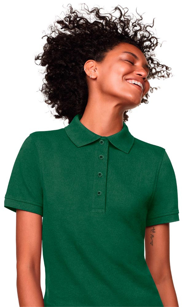 Aus MikraLinar®, Piqué aus 50% Baumwolle/50% Polyester, ca. 200 g/m2 ∙ Feminin geschnitten (Regular Fit) ∙ Gewebtes Necklabel aus hochwertigem Kettsatin mit weichen, ultraschallgeschnittenen Bandkanten für höchsten Tragekomfort sowie gewebtes Flaglabel an der linken Seitennaht ∙ Mit modisch schmaler, hochwertig verarbeiteter 4-Loch-Knopfleiste mit extrahaltbar angenähten, bruchsicheren Knöpfen, "Ton in Ton" mit dem gelaserten Schriftzug ∙ Mit Ersatzknopf und Nackenband ∙ Waschbar bis 60 °C, geeignet für Industriewäsche nach ISO 15797 ∙ Einlaufvorbehandelt