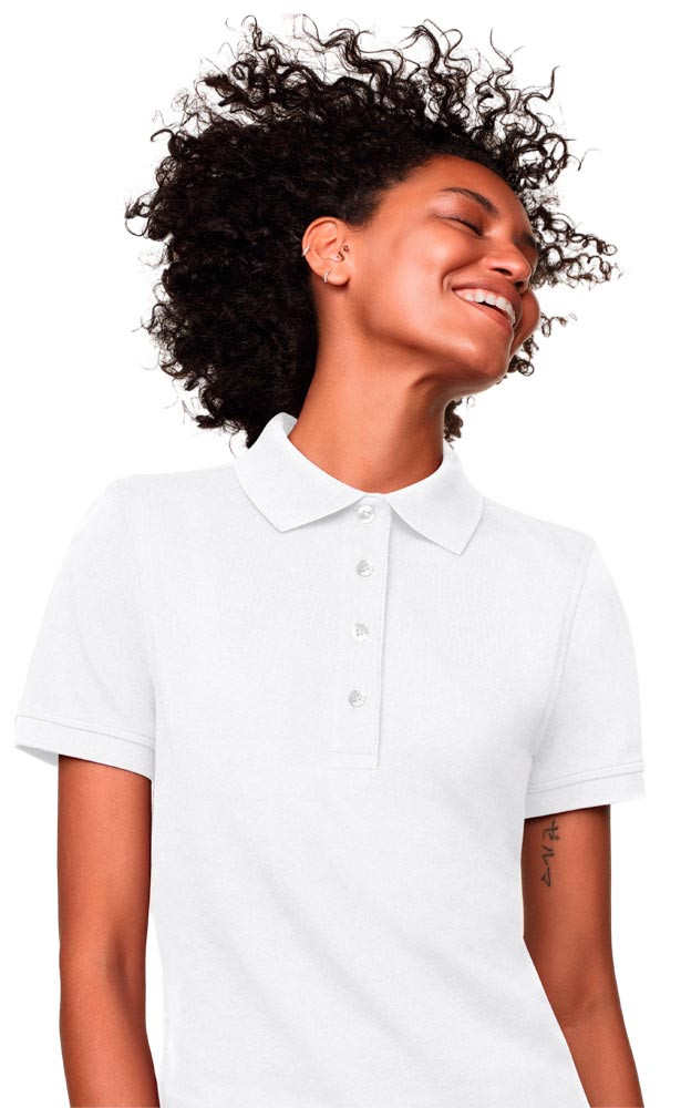 Aus MikraLinar®, Piqué aus 50% Baumwolle/50% Polyester, ca. 200 g/m2 ∙ Feminin geschnitten (Regular Fit) ∙ Gewebtes Necklabel aus hochwertigem Kettsatin mit weichen, ultraschallgeschnittenen Bandkanten für höchsten Tragekomfort sowie gewebtes Flaglabel an der linken Seitennaht ∙ Mit modisch schmaler, hochwertig verarbeiteter 4-Loch-Knopfleiste mit extrahaltbar angenähten, bruchsicheren Knöpfen, "Ton in Ton" mit dem gelaserten Schriftzug ∙ Mit Ersatzknopf und Nackenband ∙ Waschbar bis 60 °C, geeignet für Industriewäsche nach ISO 15797 ∙ Einlaufvorbehandelt