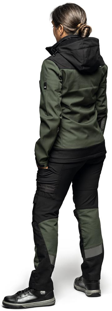 Aus 100% Polyester, ca. 320 g/m2 ∙ Stark wasserabweisend, winddicht, und atmungsaktiv ∙ High-Performance ∙ Wassersäule: 10.000 mm, Atmungsaktivität: 5.000 g/m2/24 h ∙ Neues FHB-Softshell-Gewebe ∙ Dehnbares und extrem geschmeidiges Obermaterial ∙ Abnehmbare Kapuze mit Weitenregulierung ∙ Körpernahe Passform ∙ 1 offene und 1 mit Reißverschluss verschließbare Innentasche ∙ Arm- und Bundweitenregulierung ∙ 1 Brusttasche und 2 große Seitentaschen mit Reißverschluss