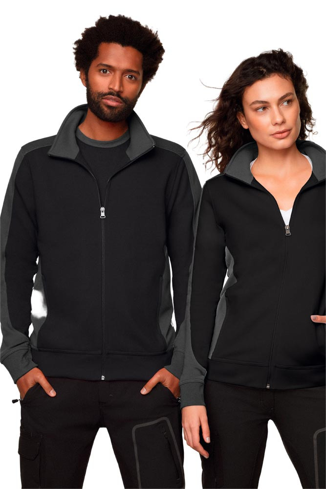 Aus Materialmix MikraLinar®, weich und besonders pflegeleicht, Maschenware aus 50% Baumwolle/50% Polyester, ca. 300 g/m2 ∙ Besonders strapazierfähige Sweatjacke für Damen (Regular Fit) mit kontrastfarbigen Einsätzen an den Seiten, Schultern und Ärmeln, formstabilen Bündchen mit LYCRA®-Anteil, nicht angerauter Innenseite (French-Terry), Nackenband, hochwertigem Frontreißverschluss und seitlichen Einschubtaschen mit Reißverschluss ∙ Alle Reißverschlüsse von YKK® ∙ Gewebtes Necklabel aus hochwertigem Kettsatin mit weichen, ultraschallgeschnittenen Bandkanten für höchsten Tragekomfort und gewebtes Flaglabel an der linken Seitennaht ∙ Waschbar bis 60 °C, geeignet für Industriewäsche nach ISO 15797 ∙ Einlaufvorbehandelt