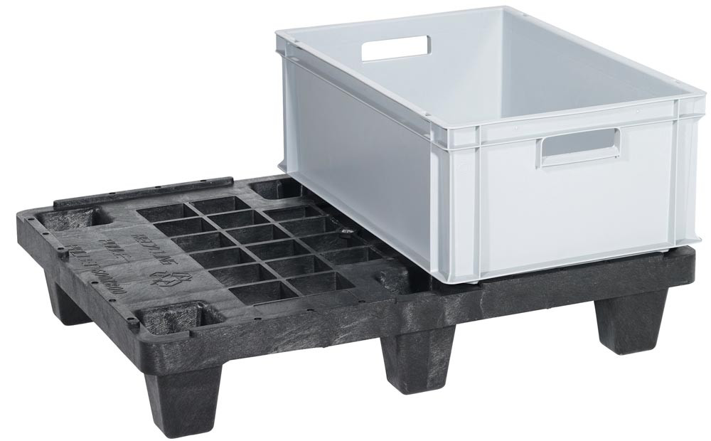Displaypalette, BxTxH 600x800x155 mm, durchbrochen, 6 Füße, stapelbar, Recyl. Polyethylen, schwarz, ohne Rand, MINDESTABNAHME 2 Stück E821134