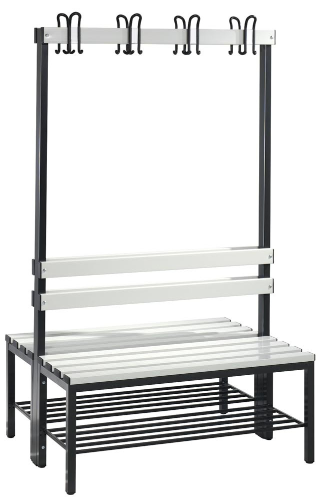 Doppelseitige Garderobenbank, Kunststoffleisten, mit Schuhrost, TxH 756x1710 mm, Länge 1000 mm, RAL 7021