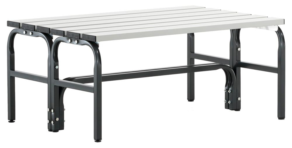 Doppelseitige Garderobenbank, ohne Schuhrost, Stahl/Alu, TxH 700x450 mm, Länge 1015 mm, RAL 7016