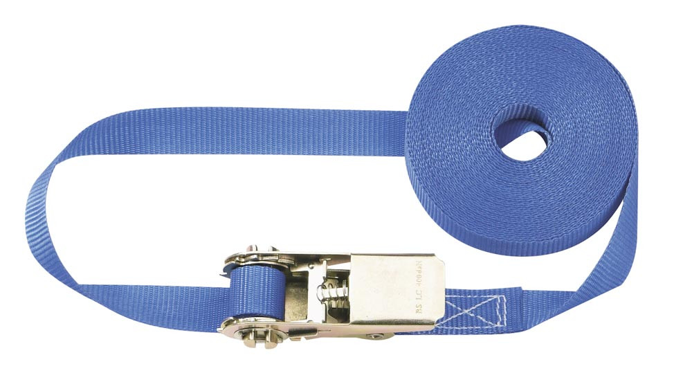 Einteiliger Zurrgurt, 800 daN zul. Zugkraft in der Umreifung, Gurtbreite 25 mm, Länge 10 m, Farbe blau, VE 4 Stück E838053