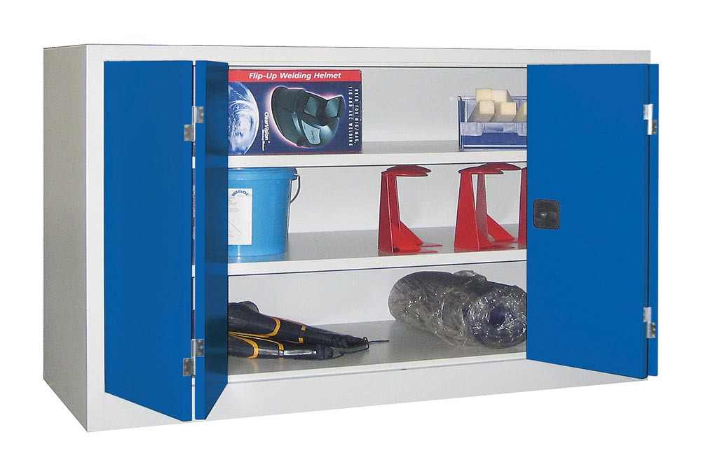 Falttürenschrank, Vollblechtüren, 2 verzinkte Böden, BxTxH 1200x400x1000 mm, RAL 7035/5010 E873538