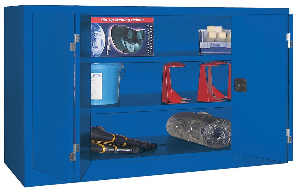 ∙ Stabile Stahlblechkonstruktion ∙ Oberfläche pulverbeschichtet ∙ Schränke mit gemeinsam verschließbaren Vollblech-Falttüren und Verstärkungstaschen ∙ Die Türen sind über einen dreiriegeligen Drehgriff mit integriertem Zylinderschloss inkl. 2 Schlüsseln verschließbar ∙ Böden im Raster von 17 mm höhenverstellbar, Belastbarkeit je Boden 80 kg bei gleichmäßig verteilter Last ∙ Max. Gehäusebelastbarkeit 600 kg