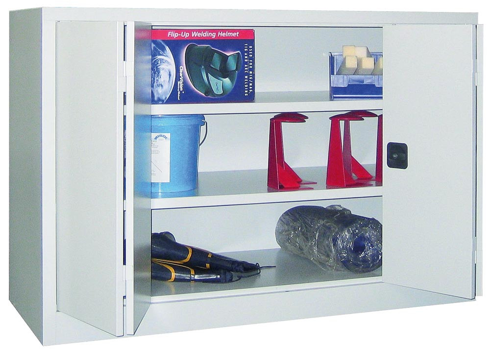 Falttürenschrank, Vollblechtüren, 2 verzinkte Böden, BxTxH 1200x400x1000 mm, RAL 7035/3000 E1567522