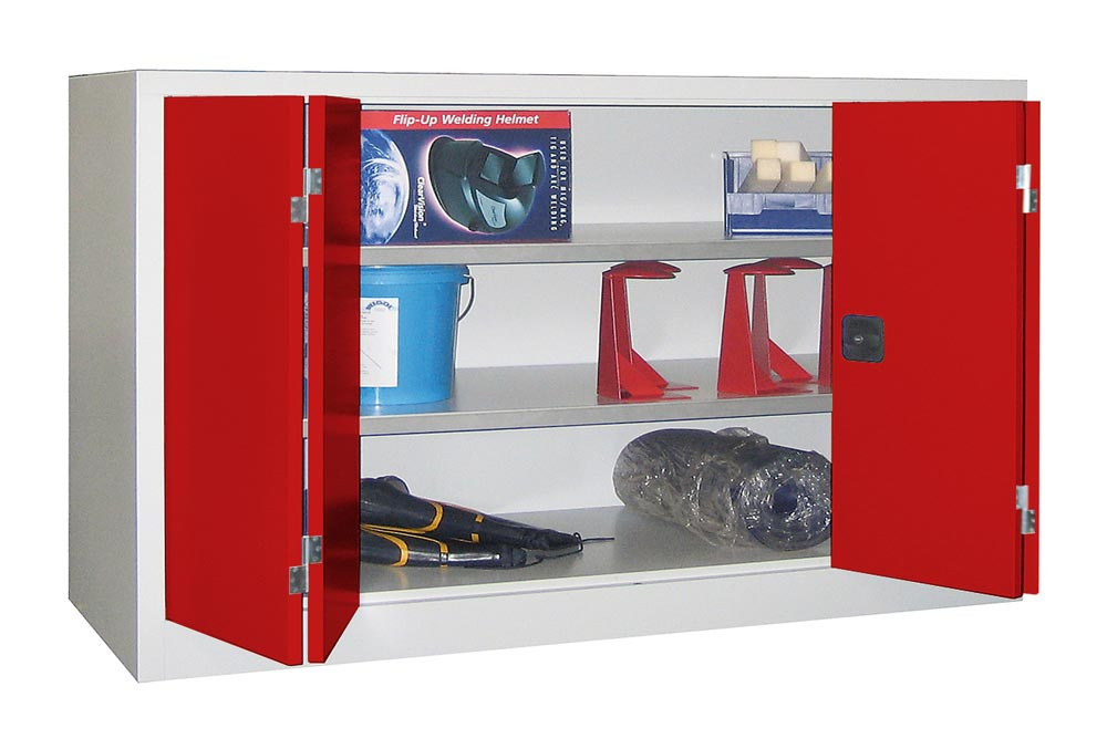 Falttürenschrank, Vollblechtüren, 2 verzinkte Böden, BxTxH 1200x400x1000 mm, RAL 7035/3000 E1567522