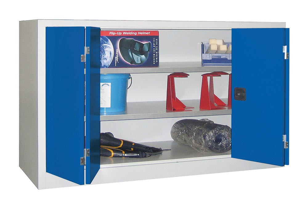 Falttürenschrank, Vollblechtüren, 2 verzinkte Böden, BxTxH 1200x400x1000 mm, RAL 7035/5010 E1572935