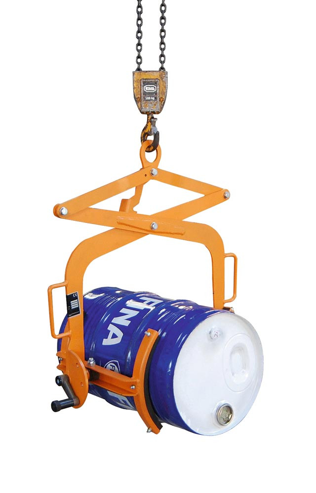 ∙ Zum vertikalen und horizontalen Heben und Transportieren von Stahl-Spundfässern und Stahl - Deckelfässern ∙ Auswechselbarer Gummianschlag zur Vermeidung von Fassbeschädigungen ∙ Arretierhebel sichert Offenstellung ∙ Kippstellung über Schalthebel wählbar