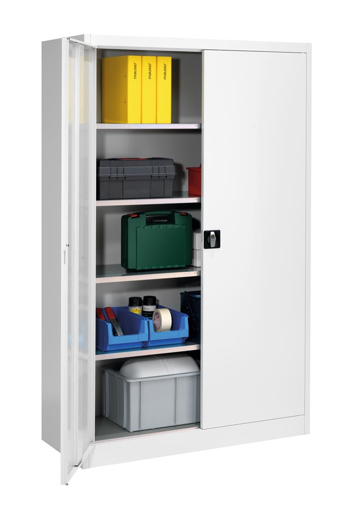 Flügeltürenschrank, 4 verz. Fachböden, BxTxH 1200x500x1950 mm, RAL7035 lichtgrau