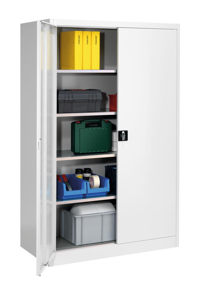 Flügeltürenschrank, 4 verz. Fachböden, BxTxH 1200x600x1950 mm, RAL7035 lichtgrau