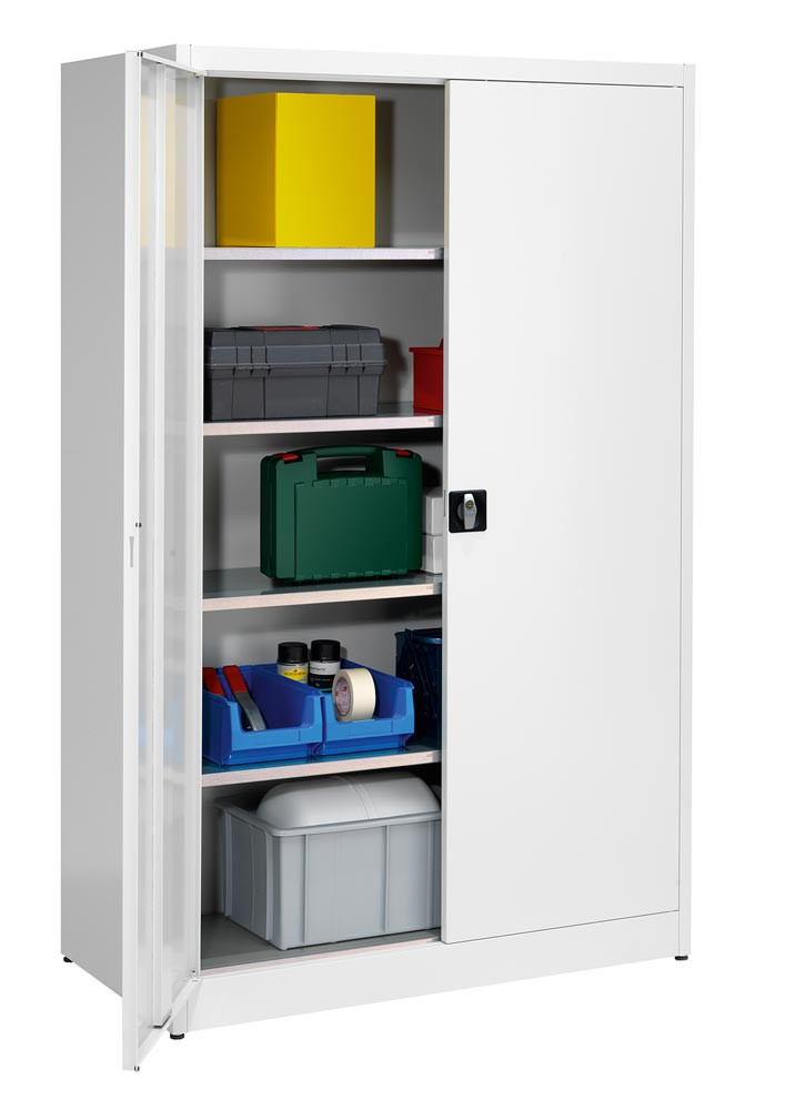 Flügeltürenschrank, 4 verz. Fachböden, BxTxH 1200x600x1965 mm, RAL7035 lichtgrau