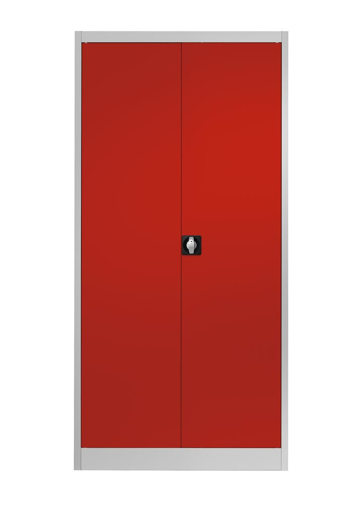 Flügeltürenschrank, 4 verz. Fachböden, BxTxH 950x500x1950 mm, RAL7035 lichtgrau/RAL3000 feuerrot
