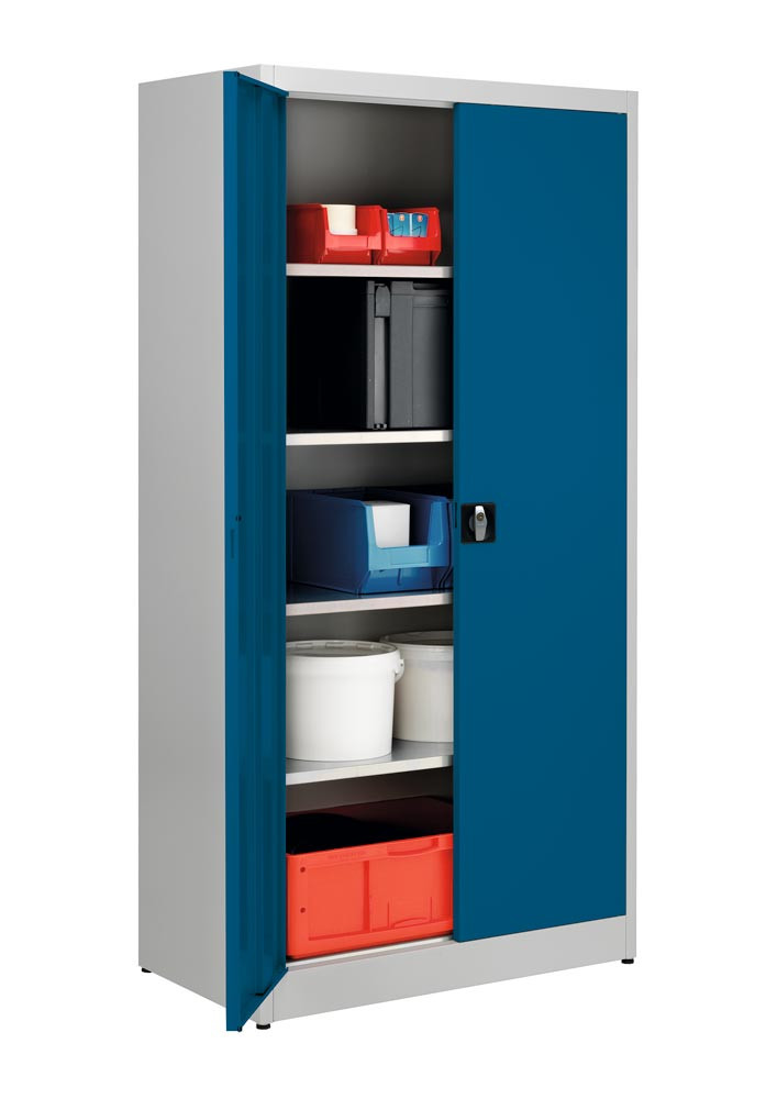 Flügeltürenschrank, 4 verz. Fachböden, BxTxH 950x500x1965 mm, RAL7035 lichtgrau/RAL5010 enzianblau