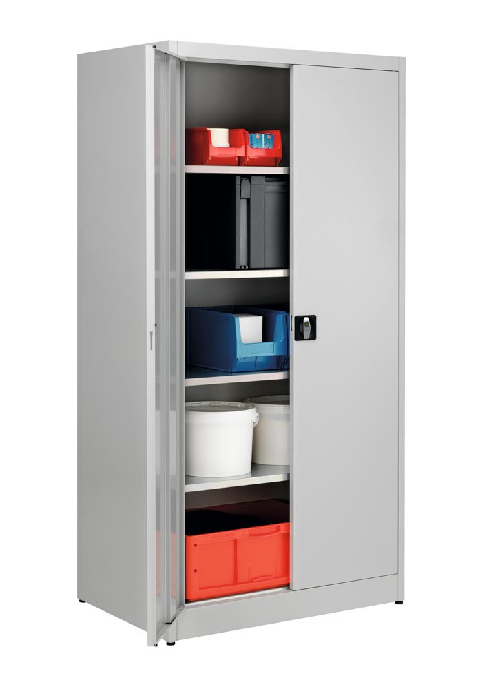 Flügeltürenschrank, 4 verz. Fachböden, BxTxH 950x600x1965 mm, RAL7035 lichtgrau