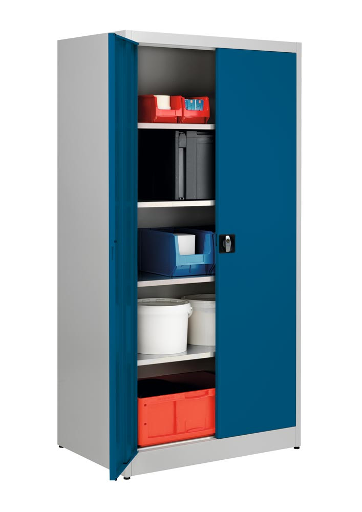Flügeltürenschrank, 4 verz. Fachböden, BxTxH 950x600x1965 mm, RAL7035 lichtgrau/RAL5010 enzianblau