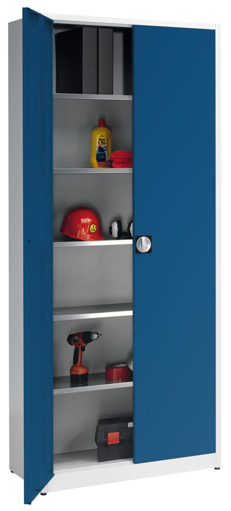 Flügeltürenschrank, Vollblechtüren, 5 verzinkte Böden, BxTxH 950x420x2200 mm, RAL 7035/5010 E6041834