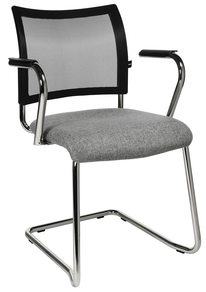 Freischwinger, Sitz-BxTxH 480x450x450 mm, Gesamthöhe 850 mm, Gestell verchromt, Netzrücken schwarz, Sitzpolster schwarz/hellgrau, VE 2 Stück