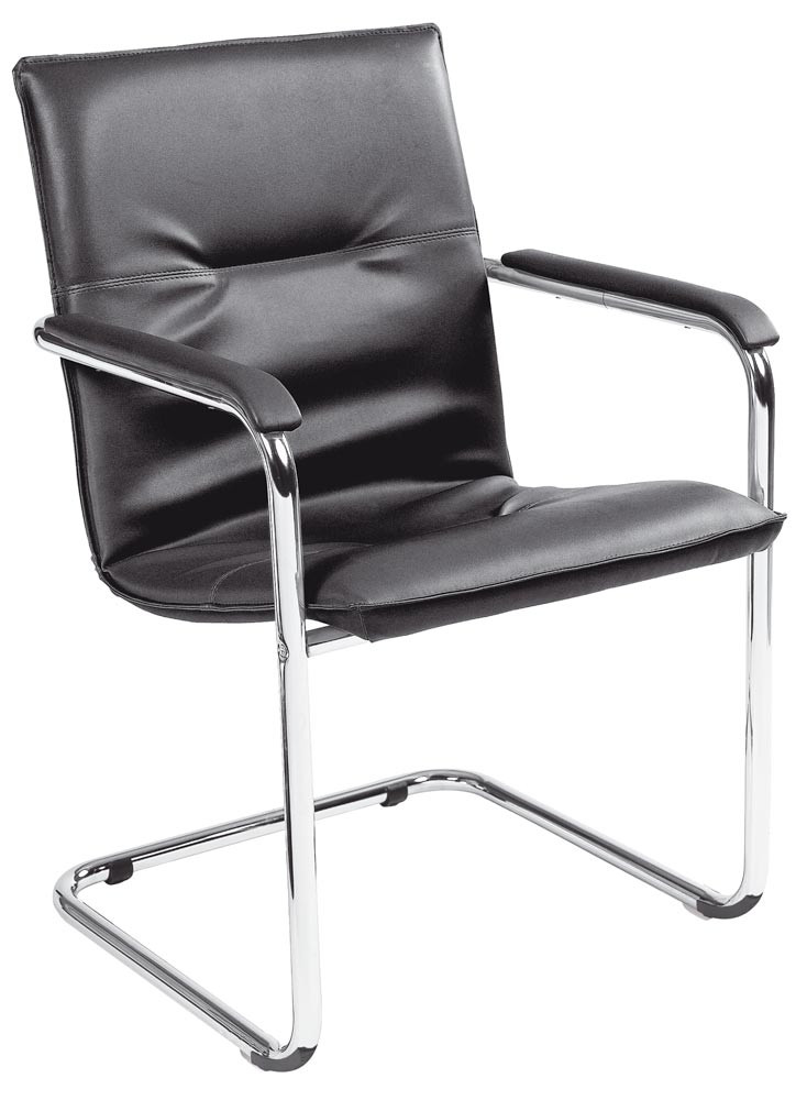 · Bequemer Freischwinger mit Komfortpolsterung · Bei Lederbezug, Rücken in Lederoptik ∙ Gepolsterte Armlehnen · Verchromtes Rundrohrgestell · Kunststoff-Bodengleiter · VE 2 Stück