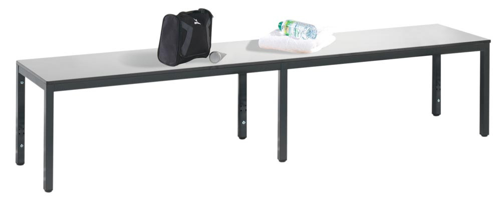 Garderobenbank, Sitzfläche HPL-Platte silbergrau, BxTxH 1960x353x401 mm, 6 Füße, Gestell RAL 7021