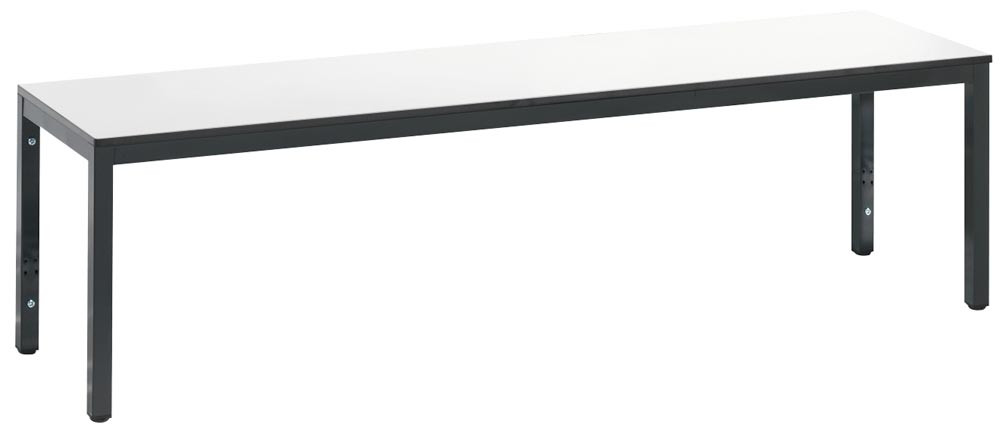 Garderobenbank, Sitzfläche HPL-Platte weiß, BxTxH 1500x353x401 mm, 4 Füße, Gestell RAL 7021 E6409432