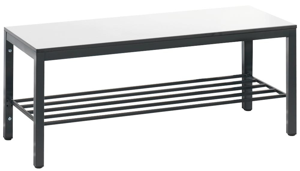 Garderobenbank, Sitzfläche HPL-Platte weiß, BxTxH 1000x353x401 mm, 4 Füße, Gestell RAL 7021 E6409431