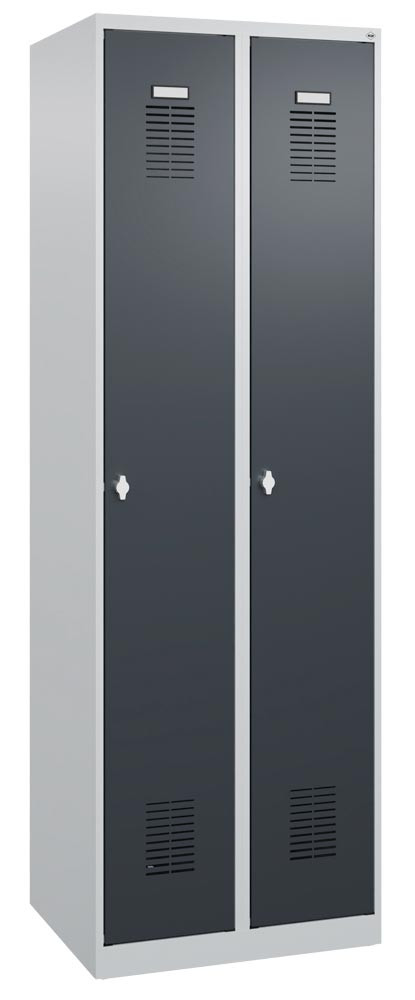 Garderobenschrank, bodenstehend, BxTxH 600x500x1850 mm, 2 Abteile, B 300 mm, Drehriegel RAL 7035/7016